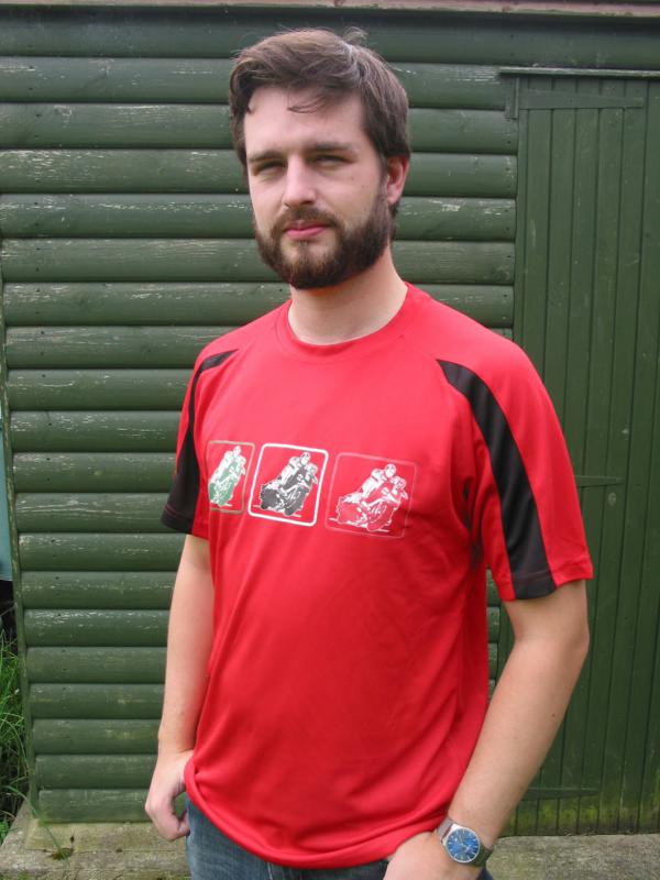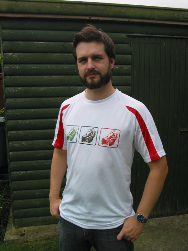 T SHIRT 3 SCOOTERS WITH SLEEVE STRIPE WHITE OR RED